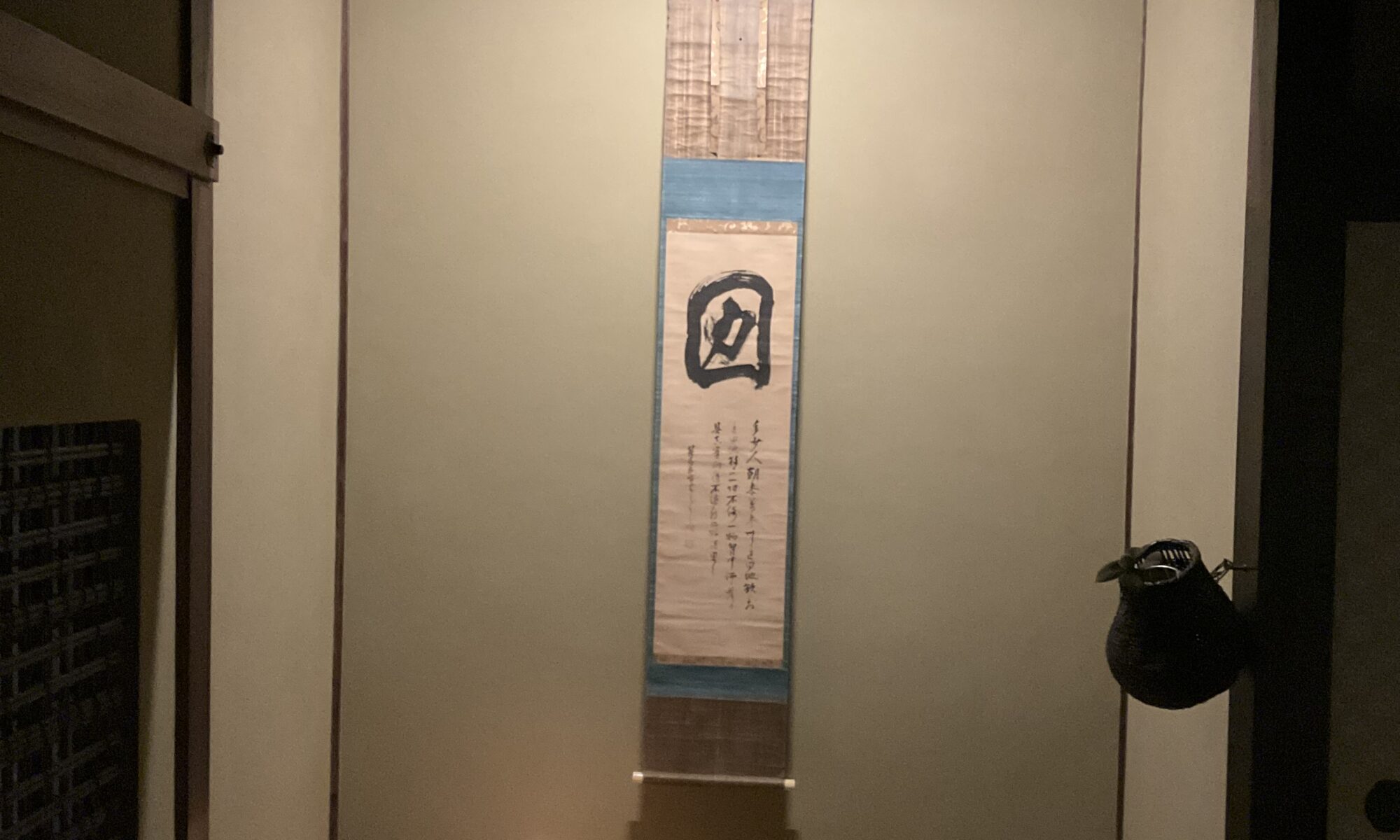 家元が還暦を迎えられる本年、床はご自身の筆になる「力囲希咄(りきいきとつ)」。茶席では、家元より「あなたにとっての力囲希咄とは?」という問いが投げかけられました。私にとって力囲希咄とは宗徧流そのものです。この四字(本当は、三字)から、宗徧流初代・山田宗徧は力囲斎を名乗り、師匠の宗旦は咄咄斎を名乗りました。力囲希咄はいうまでもなく、利休の遺偈の一部です。このことは、宗旦・宗徧の師弟は、利休の侘びを正く受け継いでいることを示しています。同時に、宗旦・宗徧の師弟は、力囲希咄から自らの斎号を選びました。そこには師弟の強い絆が感じられます。