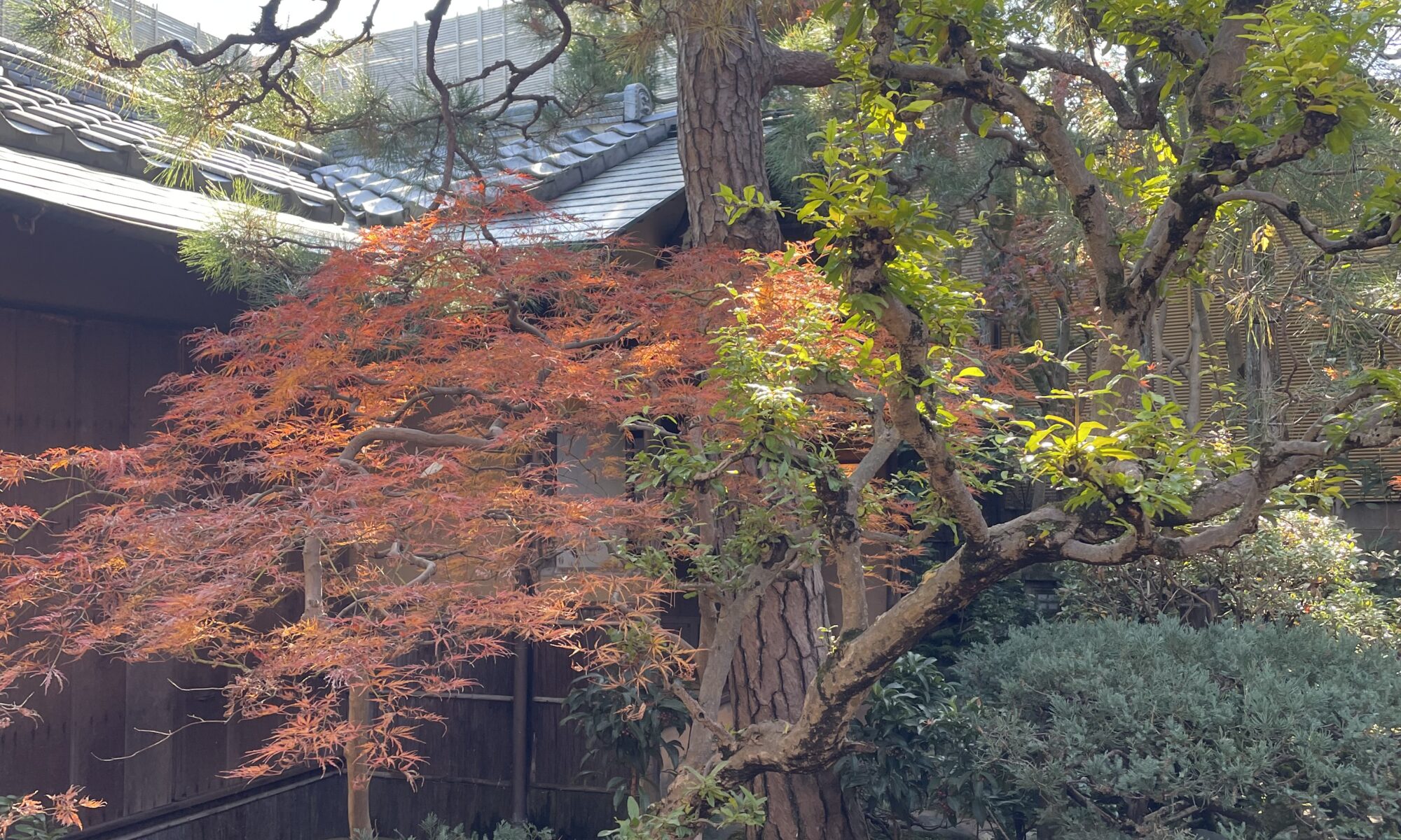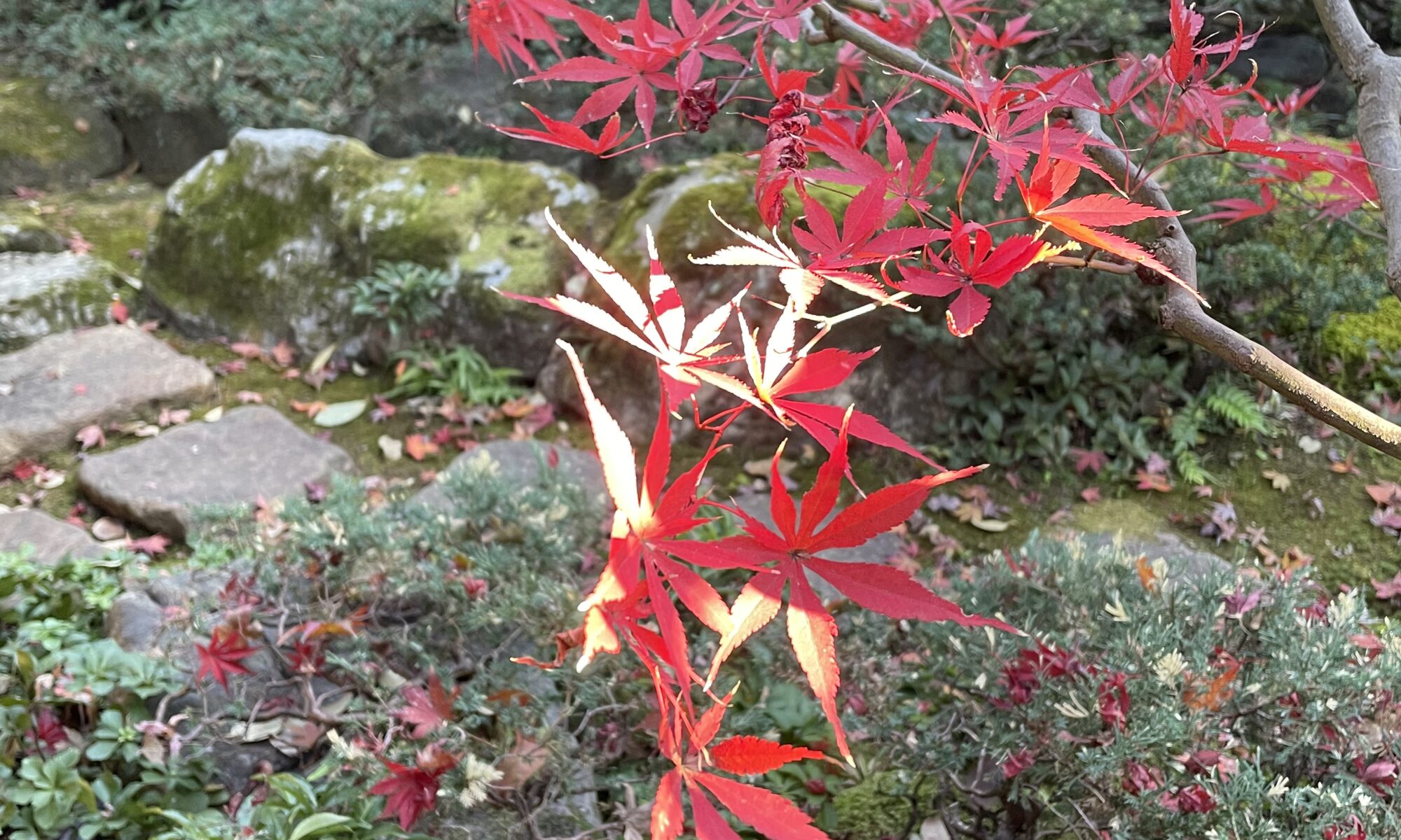庭の紅葉が見事な色をつけています。見頃はあと12月の一週目くらいかと。お見逃しなきよう。