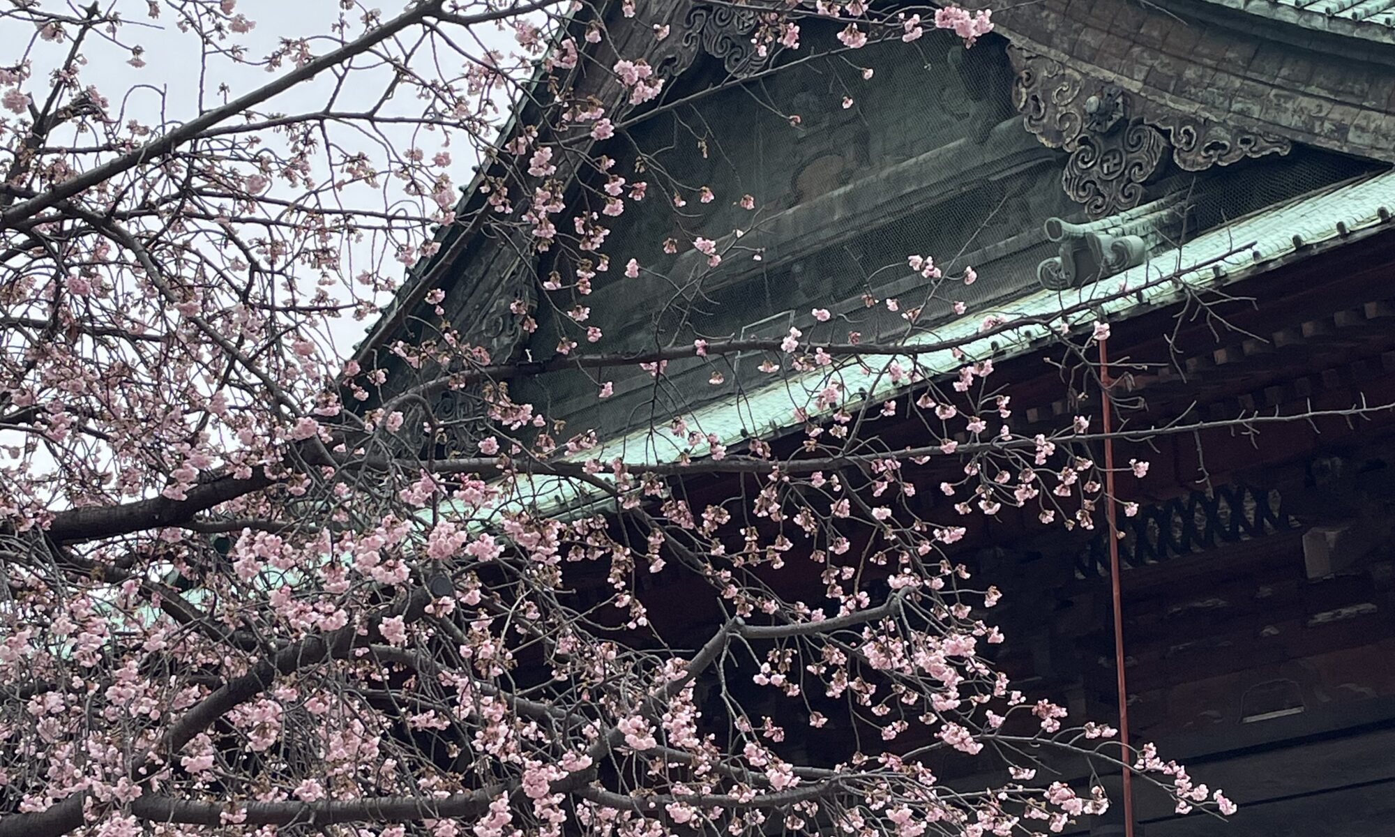 本堂脇の桜は早咲きで、毎年茶会の頃には満開です。